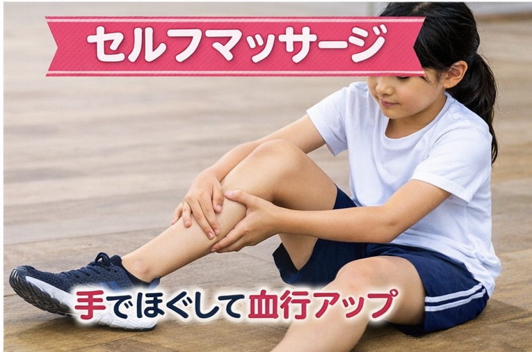 手を使って、太もも・ふくらはぎ・足裏などを中心に行います。